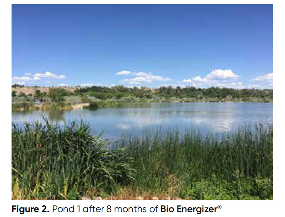 A los 8 meses, el lodo del Estanque 1 se redujo de 2,7 pies a 1,5 pies, es decir, un 44,1%. El lodo del estanque 2 se redujo de 1,5 pies a 1,02 pies, es decir, un 45,0%. Esto se tradujo en un total de 4,5 millones de galones de lodos eliminados del Estanque 1 y 1,8 millones de galones de lodos del Estanque 2, aunque el Estanque 1 fue el único que recibió tratamiento. Esto equivale a la retirada de 438 camiones de lodos.