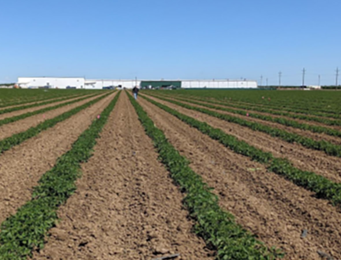 Em cooperação com a Universidade da Califórnia, processamento  As mudas de tomate foram transplantadas em uma fazenda no Vale Central da Califórnia, perto de Patterson, em 4 de abril, e depois colhidas em 26 de agosto.