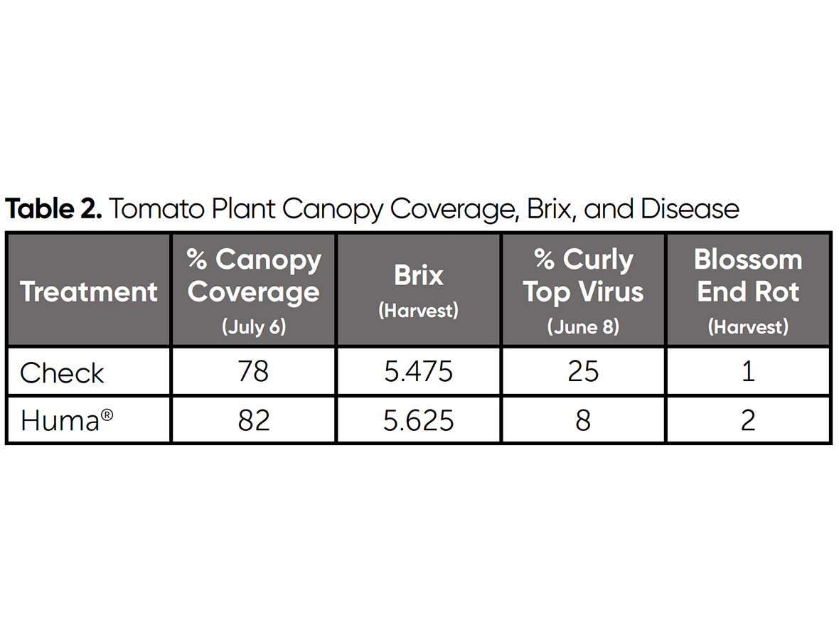 O Curly Top Virus e o mofo estavam mais presentes nas plantas Check do que nas plantas Huma®.