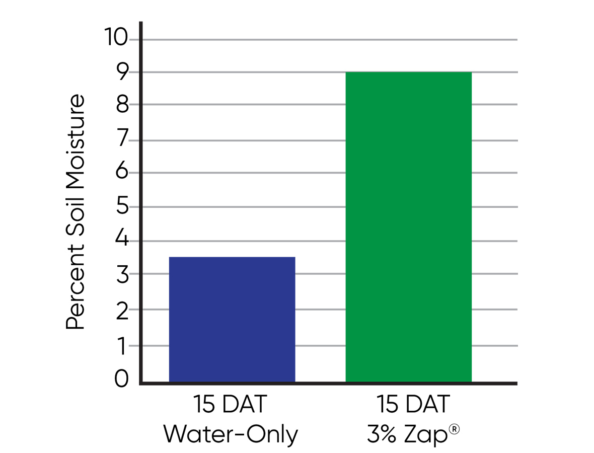 Mais bolsões de ar e solo mais fofo foram associados ao solo tratado com Zap®, resultando em mais água retida no solo tratado com Zap®.