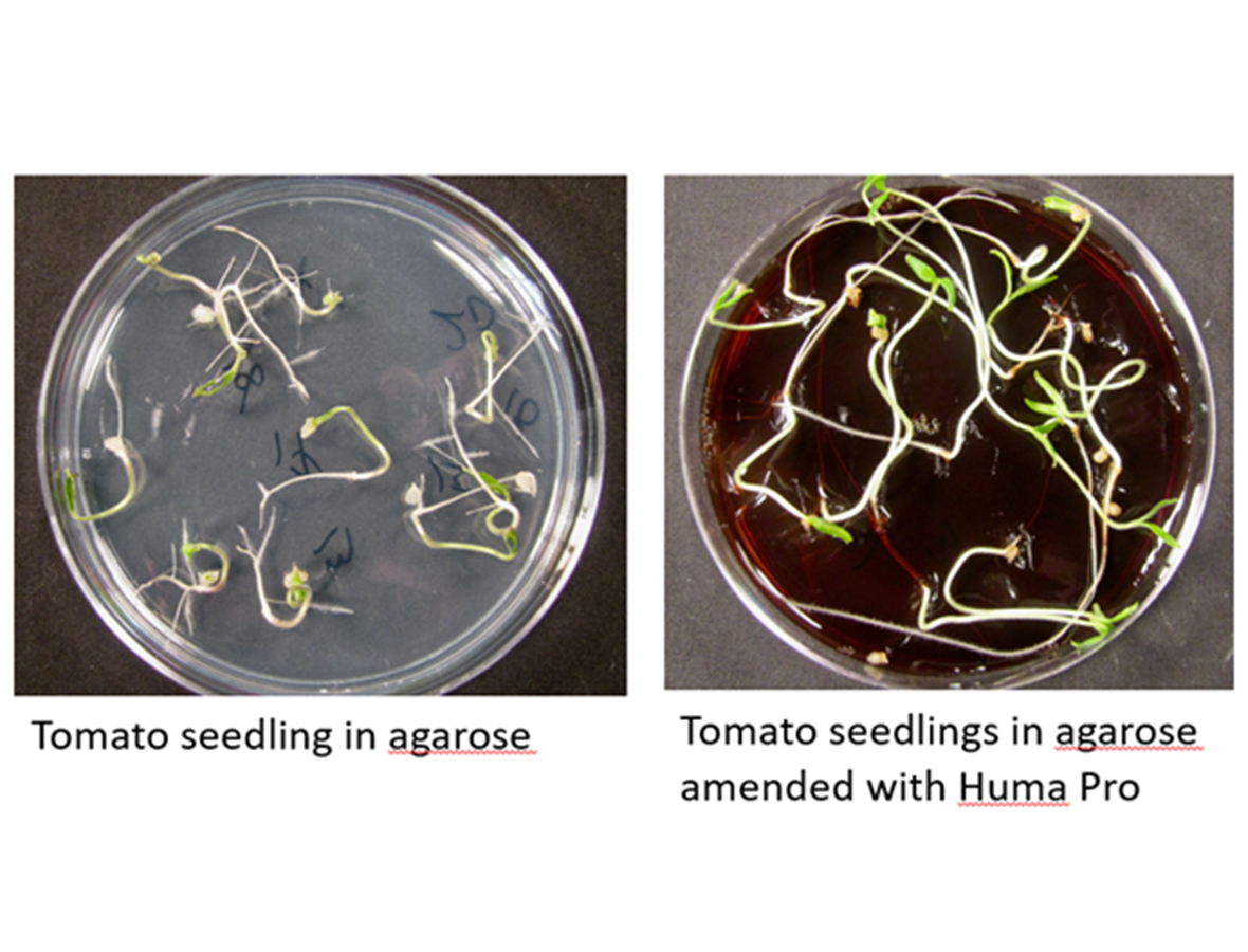 O Huma Pro® promove o desenvolvimento de mudas nas mudas testadas. O comprimento da raiz nas mudas tratadas com o Huma Pro® aumentou de 73% (tomate) a quase 300% (festuca alta), as raízes que crescem para baixo aumentaram 7 pontos percentuais (tomate) a quase 75 pontos percentuais (bluegrass) e o comprimento do broto aumentou 80% na festuca alta. O Huma Pro® atua para estimular o microbioma da raiz e mostra evidências de estimular o ciclo de rizofagia. A estimulação do ciclo de rizofagia nas plantas deve resultar no aumento da absorção de nutrientes pelas plantas.