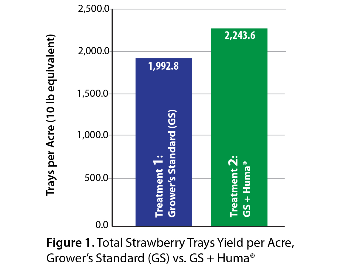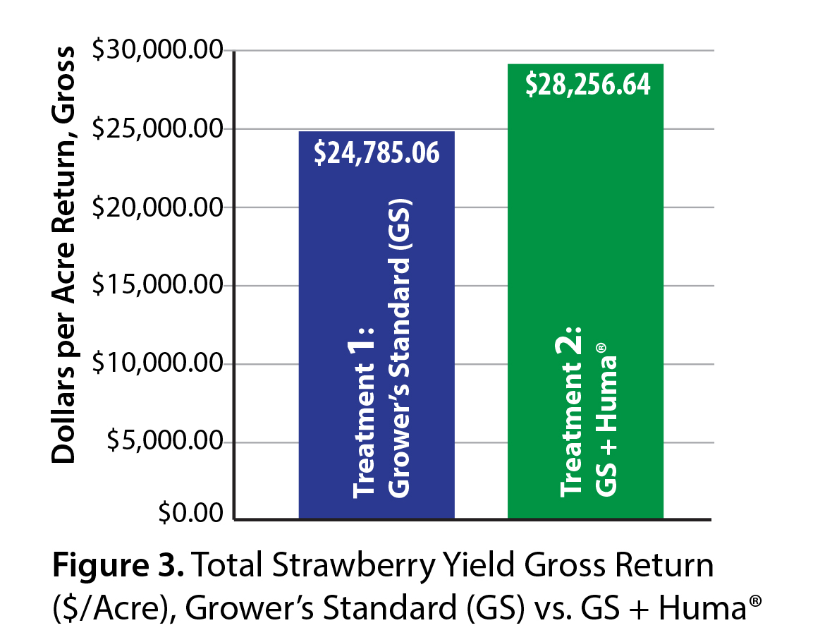Isso representa mais de 3.000 libras adicionais de bagas por acre que podem ser vendidas devido ao Tratamento 2 (Huma®).